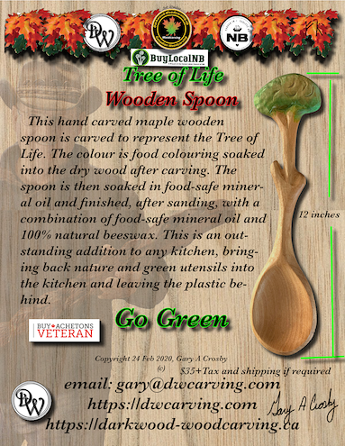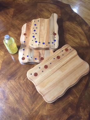 The tree is soaked food-safe food colouring, which gives it that beautiful green colour. Then it is finished with food-safe mineral oil and beeswax.